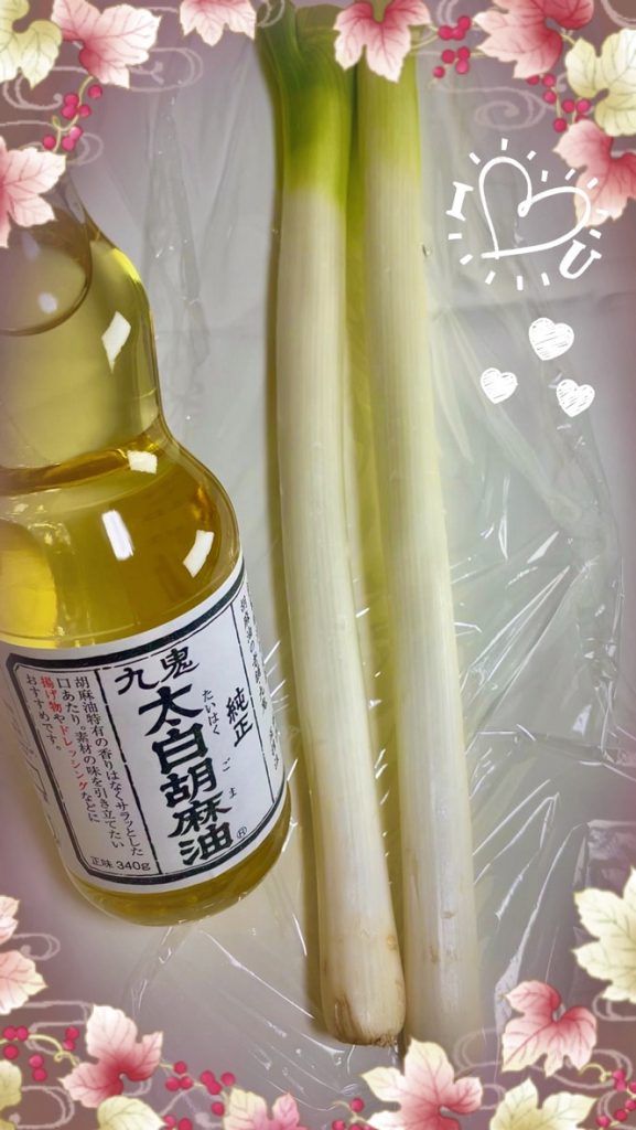 【To make it, simply chop two green onions into small pieces and pour in 1 cup (200cc) of sesame oil (white).】♡